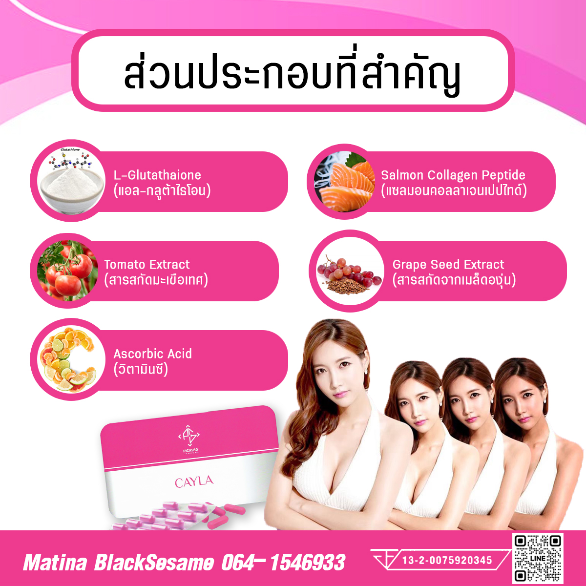 CAYLA (เคล่า) ผลิตภัณฑ์เสริมอาหารเพื่อผิวพรรณ ชุ่มชื่น ดูดี สดใส เปล่งปลั่ง เรียบเนียน มีออร่า ลดเลือนริ้วรอย ฝ้า จุดด่างดำ